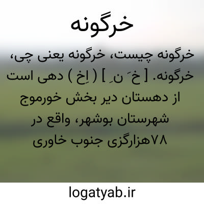 خرگونه. [ خ َ ن ِ ] ( اِخ ) دهی است از دهستان دیر بخش خورموج شهرستان بوشهر، واقع در 78هزارگزی جنوب خاوری خورموج و شمال کوه دیر ( درنگ ). دامنه، گرمسیر. آب از چاه و محصول آن غلات و خرما. شغل اهالی زراعت و راه آن مالرو است. این آبادی را دوراهک نیز می گویند. ( از فرهنگ جغرافیائی ایران ج 7 ).