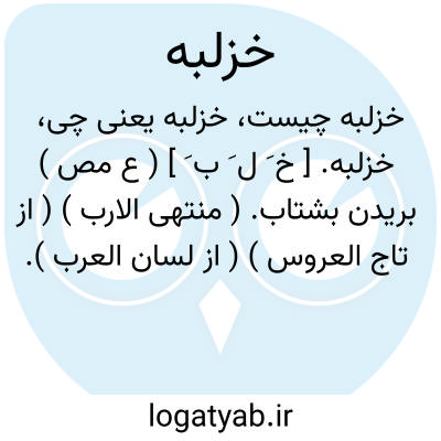 لغت نامه دهخدا خزلبه. [ خ َ ل َ ب َ ] ( ع مص ) بریدن بشتاب. ( منتهی الارب ) ( از تاج العروس ) ( از لسان العرب ).