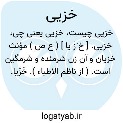 خزیی. [ خ َزْ یا ] ( ع ص ) مؤنث خزیان و آن زن شرمنده و شرمگین است. ( از ناظم الاطباء ). خَزْیا.