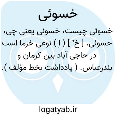 خسوئی. [ خ ُ ] ( اِ ) نوعی خرما است در حاجی آباد بین کرمان و بندرعباس. ( یادداشت بخط مؤلف ).