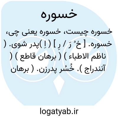 خسوره. [ خ ُ رَ / رِ ] ( اِ )پدر شوی. ( ناظم الاطباء ) ( برهان قاطع ) ( آنندراج ). خُسُر پدرزن. ( برهان قاطع ) ( ناظم الاطباء ):