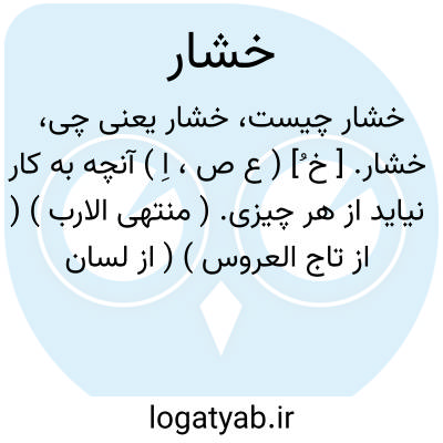 خشار. [ خ ُ] ( ع ص، اِ ) آنچه به کار نیاید از هر چیزی. ( منتهی الارب ) ( از تاج العروس ) ( از لسان العرب ). || مردم فرومایه. یقال: فلان من الخشارة؛ ای دون. || جو بی مغز. ( منتهی الارب ) ( از تاج العروس ). || قلی. ( زمخشری ). قلیه صابون. ج، اخشار.