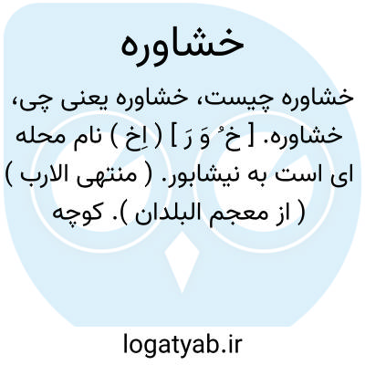 خشاوره. [ خ ُ وَ رَ ] ( اِخ ) نام محله ای است به نیشابور. ( منتهی الارب ) ( از معجم البلدان ). کوچه ای است در نیشابور. ( از انساب سمعانی ).