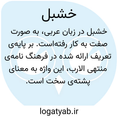 واژه‌ی خَشبَل در زبان عربی، به صورت صفت و با تلفظ «خَ َبَ َل ل» به کار رفته‌است. بر پایه‌ی تعریف ارائه شده در فرهنگ نامه‌ی منتهی الارب، این واژه به معنای پشته‌ی سخت است. در متون ادبی و کهن فارسی، این اصطلاح عربی ممکن است برای توصیف برآمدگی‌های جامد و مقاوم در طبیعت یا حتی در استعاره‌ها و تشبیه‌های شعری به کار رود. چنین کاربردی نشان از غنای زبان و تأثیرپذیری آن از زبان عربی در ادوار گذشته دارد. امروزه اگرچه استفاده از این واژه در گویش روزمره کم‌تر به چشم می‌خورد، اما شناخت آن برای درک متون تاریخی و ادبیات کلاسیک ضروری به نظر می‌رسد. بنابراین، خَشبَل نمونه‌ای از کهن‌واژه‌هایی است که در گذر زمان، جایگاه کاربردی خود را در گفتار عمومی از دست داده، اما در میراث مکتوب زبان فارسی باقی مانده‌است.