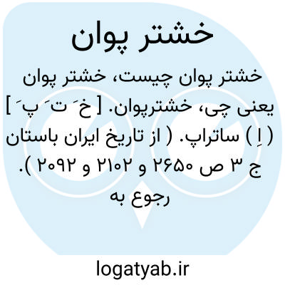 لغت نامه دهخدا خشترپوان. [ خ َ ت َ پ َ ] ( اِ ) ساتراپ. ( از تاریخ ایران باستان ج 3 ص 2650 و 2102 و 2092 ). رجوع به خشترپاون شود.