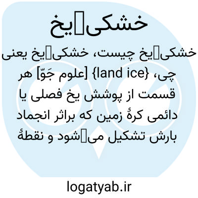 {land ice} [علوم جَوّ] هر قسمت از پوشش یخ فصلی یا دائمی کرۀ زمین که براثر انجماد بارش تشکیل میشود و نقطۀ مقابل دریایخ است