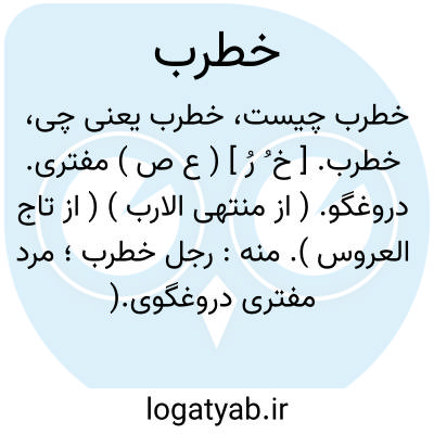 خطرب. [ خ ُ رُ ] ( ع ص ) مفتری. دروغگو. ( از منتهی الارب ) ( از تاج العروس ). منه: رجل خطرب؛ مرد مفتری دروغگوی.( از منتهی الارب ) ( از تاج العروس ) ( از لسان العرب ).