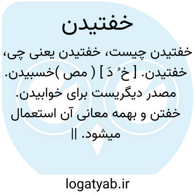 خفتیدن. [ خ ُ دَ ] ( مص )خسبیدن. مصدر دیگریست برای خوابیدن. خفتن و بهمه معانی آن استعمال میشود. || بوسیدن یکدیگر. ( ناظم الاطباء ). || غلطیدن. ( آنندراج ). پیچیدن و گردیدن. || راحت شدن. ( ناظم الاطباء ). || ماست گردیدن شیر و جغرات شدن آن. ( برهان قاطع ). || بر زانو نشستن. ( ناظم الاطباء ). || بزانو درآمدن شتر. ( برهان قاطع ).