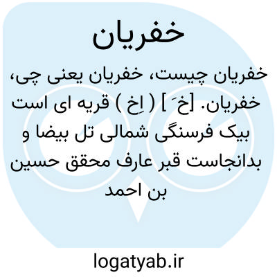 خفریان. [خ َ ] ( اِخ ) قریه ای است بیک فرسنگی شمالی تل بیضا و بدانجاست قبر عارف محقق حسین بن احمد بیضاوی که از بزرگان مشایخ بود و پادشاه زمان امیر عضدالدوله دیلمی او را گرامی می داشته و اغلب بخدمتش می رسیده و از او طلب وعظ و نصیحت می کرده است. ( از فارسنامه ناصری ).