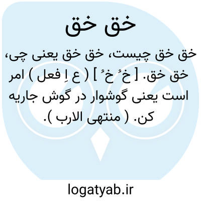 خق خق. [ خ ُ خ ُ ] ( ع اِ فعل ) امر است یعنی گوشوار در گوش جاریه کن. ( منتهی الارب ).