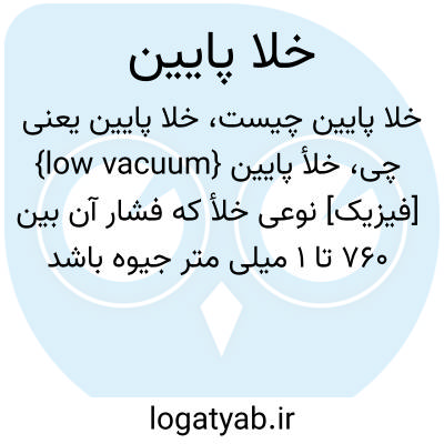 {low vacuum} [فیزیک] نوعی خلأ که فشار آن بین 760 تا 1 میلی متر جیوه باشد
