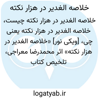 [ویکی نور] «خلاصه الغدیر در هزار نکته» اثر محمدرضا معراجی، تلخیص کتاب شریف «الغدیر» علامه امینی است که به زبان فارسی در یک جلد منتشر شده است.