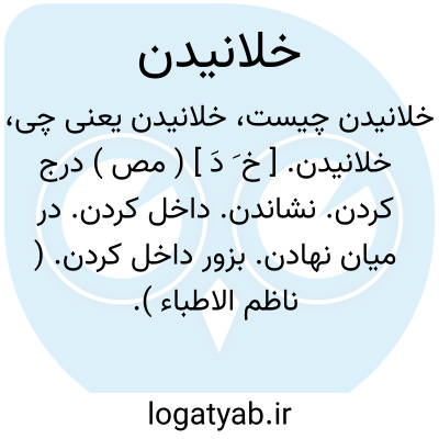 خلانیدن. [ خ َ دَ ] ( مص ) درج کردن. نشاندن. داخل کردن. در میان نهادن. بزور داخل کردن. ( ناظم الاطباء ). فروبردن چیزی نوک تیز در چیزی دیگر، چنانکه خاری به تن. ( یادداشت بخط مؤلف ): خالدبن ولید برسم مبارزان عرب دو تیر بر دستار خویش خلانیده، نزد ابوبکر رفت. ( روضةالصفا ج 2 ). هزم؛ انگشت خلانیدن در چیزی، چنانکه مغاکچه پیدا آید. ( منتهی الارب ). انهزام؛ با مغاک شدن چیزی بخلانیدن انگشت در وی. ( منتهی الارب ). || محکم کردن. || نصب نمودن. || رهانیدن. ( ناظم الاطباء ).