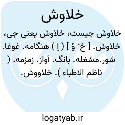 خلاوش. [ خ َ وُ ] ( اِ ) هنگامه. غوغا. شور.مشغله. بانگ. آواز. زمزمه. ( ناظم الاطباء ). خلاووش.
