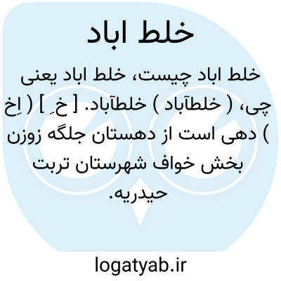 ( خلطآباد ) خلطآباد. [ خ ِ ] ( اِخ ) دهی است از دهستان جلگه زوزن بخش خواف شهرستان تربت حیدریه. دارای 220 تن سکنه. آب آن از قنات و محصول آنجا غلات. شغل اهالی زراعت، گله داری و قالیچه بافی و راهش مالرو است. ( از فرهنگ جغرافیایی ایران ج 9 ).