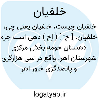 خلفیان. [ خ َ ] ( اِخ ) دهی است جزء دهستان حومه بخش مرکزی شهرستان اهر. واقع در سی هزارگزی و پانصدگزی خاور اهر و دوازده هزاروپانصدگزی شوسه اهر به خیاو. این دهکده کوهستانی با آب و هوای معتدل ودارای 185 تن سکنه است. آب آن از چشمه و محصول آنجاغلات. شغل اهالی زراعت و گله داری و از صنایع دستی گلیم بافی است. راه این دهکده مالرو است و آن محل قشلاق ایل چلبیانلو است. ( از فرهنگ جغرافیایی ایران ج 4 ).