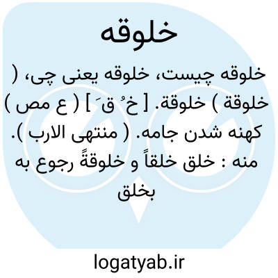 لغت نامه دهخدا ( خلوقة ) خلوقة. [ خ ُ ق َ ] ( ع مص ) کهنه شدن جامه. ( منتهی الارب ). منه: خلق خلقاً و خلوقةً رجوع به بخلق شود. || ( ع اِمص ) ملاست. نرمی. || تابانی. ( منتهی الارب ) ( از تاج العروس ).