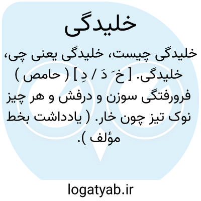 خلیدگی. [ خ َ دَ / دِ ] ( حامص ) فرورفتگی سوزن و درفش و هر چیز نوک تیز چون خار. ( یادداشت بخط مؤلف ). || ( اِ ) جای فرورفتگی سوزن. ( ناظم الاطباء ).