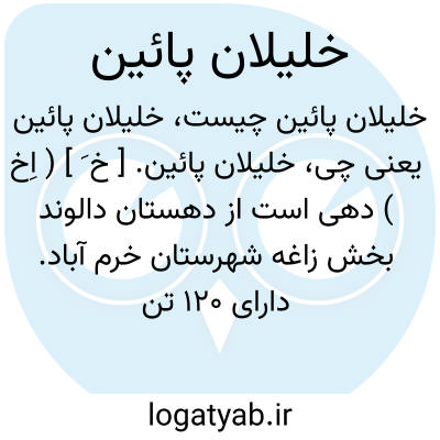 خلیلان پائین. [ خ َ ] ( اِخ ) دهی است از دهستان دالوند بخش زاغه شهرستان خرم آباد. دارای 120 تن سکنه. آب آن ازرودخانه و محصول آن غلات و لبنیات. شغل اهالی زراعت و از صنایع دستی زنان فرش و طناب و جاجیم بافی است. راه مالرو می باشد. ( از فرهنگ جغرافیایی ایران ج 6 ).