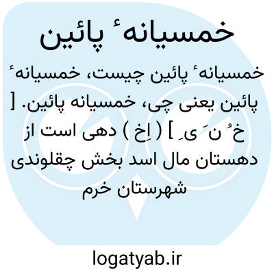 خمسیانه پائین. [ خ ُ ن َ ی ِ ] ( اِخ ) دهی است از دهستان مال اسد بخش چقلوندی شهرستان خرم آباد. دارای 120 تن سکنه. آب آن از چشمه و محصول آن غلات و حبوبات و صیفی و لبنیات. شغل اهالی زراعت و گله داری است. صنایع دستی فرش و سیاه چادر بافی و راه مالرو است. ( از فرهنگ جغرافیایی ایران ج 6 ).