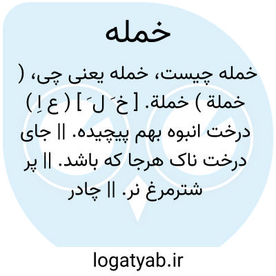خملة.[ خ ِ ل َ ] ( ع اِ ) ناکسی. || چادر و جامه ٔخواب دار. خَمْلَة. || جامه مخمل و پرزدار مانند چادر و جز آن. خَمْلَة. || ابریشم. خَمْلَة. موی شتر. || پارچه ابریشمین وپشمین. || درون مرد و سرّ او. ج، خملات.
