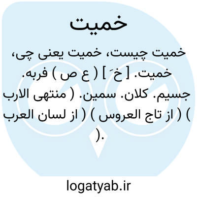 خمیت. [ خ َ ] ( ع ص ) فربه. جسیم. کلان. سمین. ( منتهی الارب ) ( از تاج العروس ) ( از لسان العرب ).