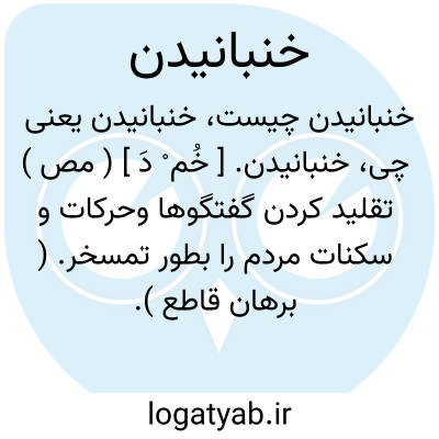 خنبانیدن. [ خُم ْ دَ ] ( مص ) تقلید کردن گفتگوها وحرکات و سکنات مردم را بطور تمسخر. ( برهان قاطع ).