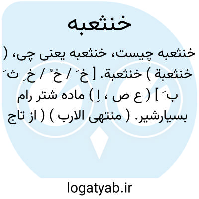 ( خنثعبة ) خنثعبة. [ خ َ / خ ُ / خ ِ ث َ ب َ ] ( ع ص، اِ ) ماده شتر رام بسیارشیر. ( منتهی الارب ) ( از تاج العروس ) ( از لسان العرب ). خُنثُعبَة.