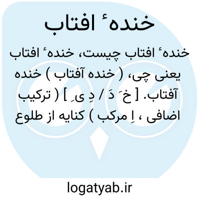 ( خنده آفتاب ) خنده آفتاب. [ خ َ دَ / دِ ی ِ ] ( ترکیب اضافی، اِ مرکب ) کنایه از طلوع خورشید: