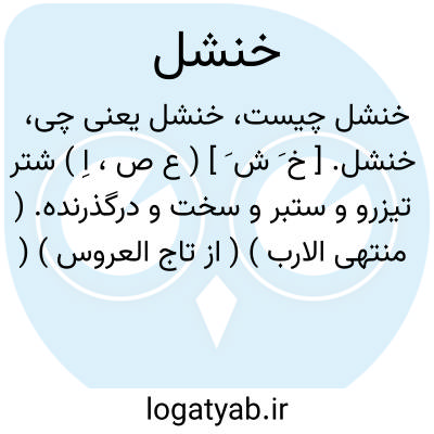 خنشل. [ خ َ ش َ ] ( ع ص، اِ ) شتر تیزرو و ستبر و سخت و درگذرنده. ( منتهی الارب ) ( از تاج العروس ) ( از لسان العرب ).