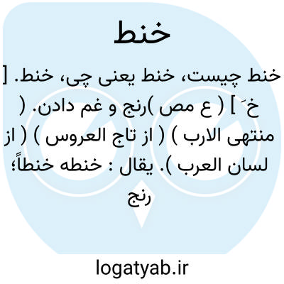 خنط. [ خ َ ] ( ع مص )رنج و غم دادن. ( منتهی الارب ) ( از تاج العروس ) ( از لسان العرب ). یقال: خنطه خنطاً؛ رنج و غم داد او را.