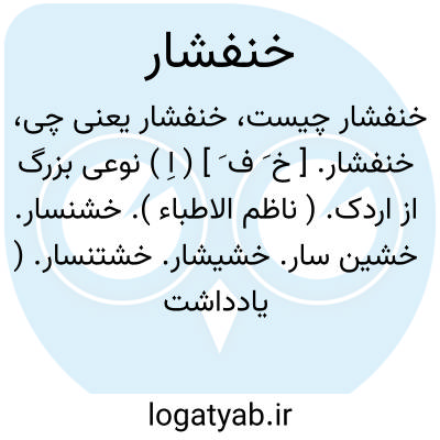 خنفشار. [ خ َ ف َ ] ( اِ ) نوعی بزرگ از اردک. ( ناظم الاطباء ). خشنسار. خشین سار. خشیشار. خشتنسار. ( یادداشت بخط مؤلف ).