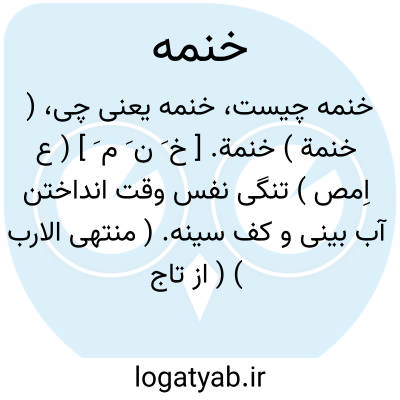 ( خنمة ) خنمة. [ خ َ ن َ م َ ] ( ع اِمص ) تنگی نفس وقت انداختن آب بینی و کف سینه. ( منتهی الارب ) ( از تاج العروس ) ( از لسان العرب ).
