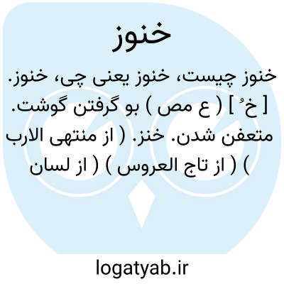 خنوز. [ خ ُ ] ( ع مص ) بو گرفتن گوشت. متعفن شدن. خنز. ( از منتهی الارب ) ( از تاج العروس ) ( از لسان العرب ).