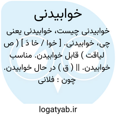 لغت نامه دهخدا خوابیدنی. [ خوا / خا دَ ] ( ص لیاقت ) قابل خوابیدن. مناسب خوابیدن. || ( ق ) در حال خوابیدن. چون: فلانی خوابیدنی می نویسد.