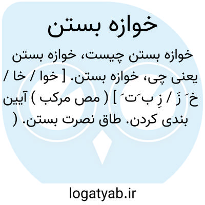 خوازه بستن. [ خوا / خا / خ َ زَ / زِ ب َت َ ] ( مص مرکب ) آیین بندی کردن. طاق نصرت بستن. ( یادداشت بخط مؤلف ): و کسی که بزیارت نور رودفضیلت حج دارد و چون بازآید شهر را خوازه بندند سبب آمدن از آن جای متبرک. ( تاریخ بخارای نرشخی ص 13 ). گر با تو ز خانه سوی کوی آیم بندند چه خوازه ها و آیین ها.سوزنی.به پیش باد نه آن نامه تا بمن برسد که هیچ پیک نیابی چو باد با تک و پوی بکوی صافی آن نامه را بزن عنوان نه پیش نامه تو تا خوازه بندم کوی.سوزنی.خوازه بست زگلبن همه فراز و نشیب بساط کرد ز سبزه همه جبال و قفار.مسعودسعد.