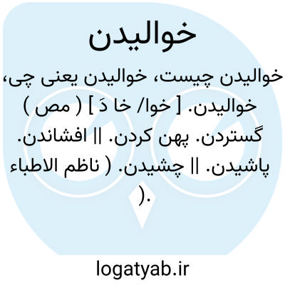خوالیدن. [ خوا/ خا دَ ] ( مص ) گستردن. پهن کردن. || افشاندن. پاشیدن. || چشیدن. ( ناظم الاطباء ).