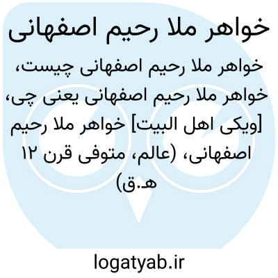 [ویکی اهل البیت] خواهر ملا رحیم اصفهانی، (عالم، متوفی قرن 12 هـ.ق) بانویی که در برخی کتاب های تذکره از او به عنوان اخت ملا رحیم نام برده شده است، از زنان دانشمند اواخر عصر صفوی نیمه اول قرن 12 هـ.ق بوده است. شهرت پدر او «ملای کرانی» بوده و همان طور که آمد برادرش ملا عبدالرحیم نام داشته و ساکن محله کران بوده است و سال تولد و وفات وی ضبط نشده است.
