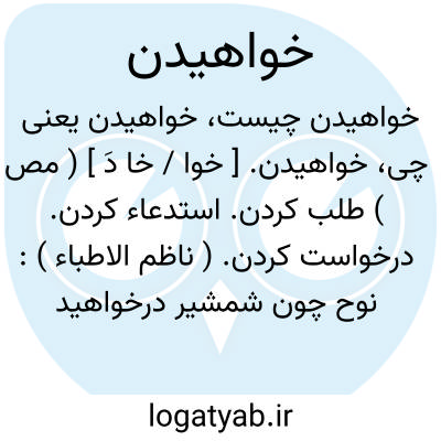 خواهیدن. [ خوا / خا دَ ] ( مص ) طلب کردن. استدعاء کردن. درخواست کردن. ( ناظم الاطباء ):