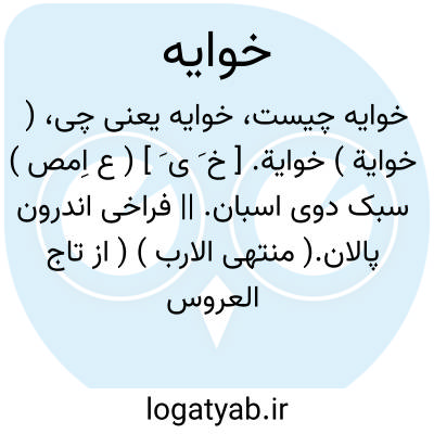 ( خوایة ) خوایة. [ خ َ ی َ ] ( ع اِمص ) سبک دوی اسبان. || فراخی اندرون پالان.( منتهی الارب ) ( از تاج العروس ) ( از لسان العرب ). || ( اِ ) لوله سنان که سر نیزه در وی باشد.