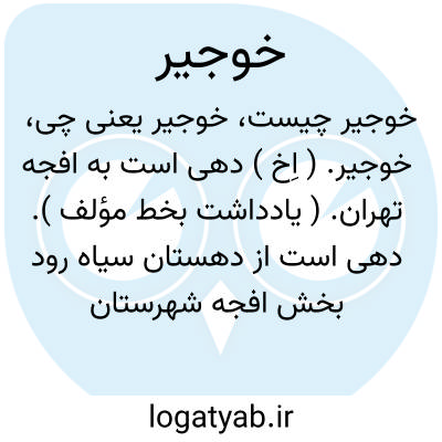 خوجیر. ( اِخ ) دهی است به افجه تهران. ( یادداشت بخط مؤلف ). دهی است از دهستان سیاه رود بخش افجه شهرستان تهران. ( از فرهنگ جغرافیایی ایران ج 1 ).