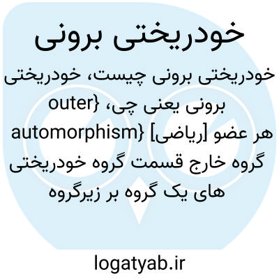 {outer automorphism} [ریاضی] هر عضو گروه خارج قسمت گروه خودریختی های یک گروه بر زیرگروه خودریختی های درونی آن