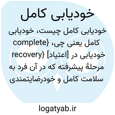 {complete recovery} [اعتیاد] خودیابی در مرحلۀ پیشرفته که در آن فرد به سلامت کامل و خودرضایتمندی و سرزندگی و آرامش دست یافته است متـ. بهبود کامل