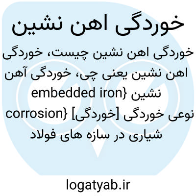 {embedded iron corrosion} [خوردگی] نوعی خوردگی شیاری در سازه های فولاد زنگ نزن که در آن آهن غیرآلیاژی باقی مانده در سطح فولاد در تماس با رطوبت هوا زنگ میزند