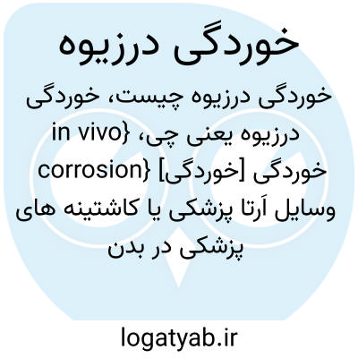 {in vivo corrosion} [خوردگی] خوردگی وسایل اَرتا پزشکی یا کاشتینه های پزشکی در بدن براثر سیالات خورندۀ موجود در بدن متـ. خوردگی درون تنی