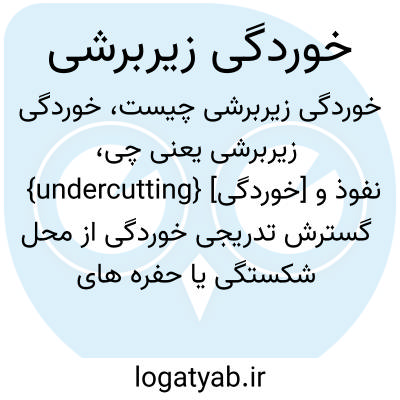 {undercutting} [خوردگی] نفوذ و گسترش تدریجی خوردگی از محل شکستگی یا حفره های ایجادشده در پوسه (film ) محافظ یا لبه های محافظت شده در زیر پوشش