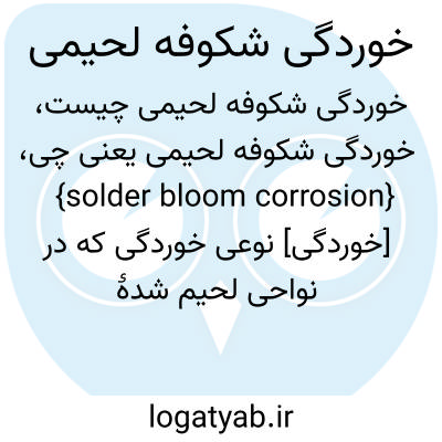 {solder bloom corrosion} [خوردگی] نوعی خوردگی که در نواحی لحیم شدۀ تبادلگرهای گرمایی پدید می آید