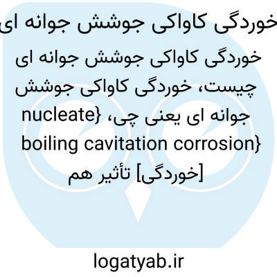 {nucleate boiling cavitation corrosion} [خوردگی] تأثیر هم زمان خوردگی و سایش برخوردی ناشی از ایجاد حباب های اولیۀ بخار مایع درحال جوش در یک سامانه