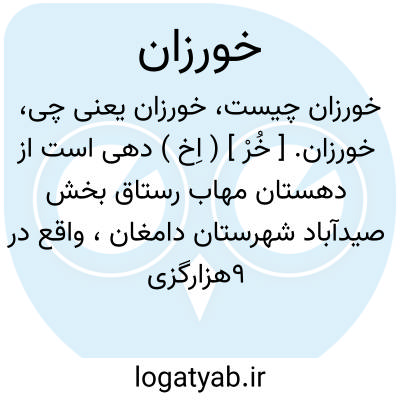 خورزان. [ خُرْ ] ( اِخ ) دهی است از دهستان مهاب رستاق بخش صیدآباد شهرستان دامغان، واقع در 9هزارگزی ایستگاه امردان. این دهکده در جلگه قرار دارد و با آب و هوای معتدل و 310 تن سکنه می باشد. آب آن از قنات. محصول آن غلات و پسته و پنبه و انگور و صیفی. شغل اهالی زراعت و گله داری و از صنایع دستی زنان کرباسبافی می باشد. از طریق حسن آباد می توان بدانجا اتومبیل برد. ( از فرهنگ جغرافیایی ایران ج 3 ).