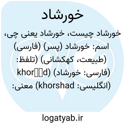 اسم: خورشاد (پسر) (فارسی) (طبیعت، کهکشانی) (تلفظ: khoršād) (فارسی: خورشاد) (انگلیسی: khorshad)